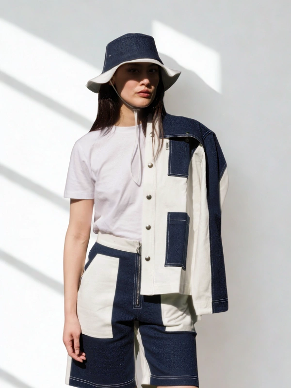 Le tissu utilisé pour ce bob provient des chutes de tissus de la veste Gauthier et du bermuda Anfa. Cette approche nous a permis de réduire notre empreinte environnementale en donnant une seconde vie à des matériaux existants tout en maintenant une haute qualité de fabrication.