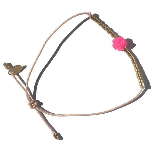 Petit bracelet lien rose nude, petites perles dorées et rose