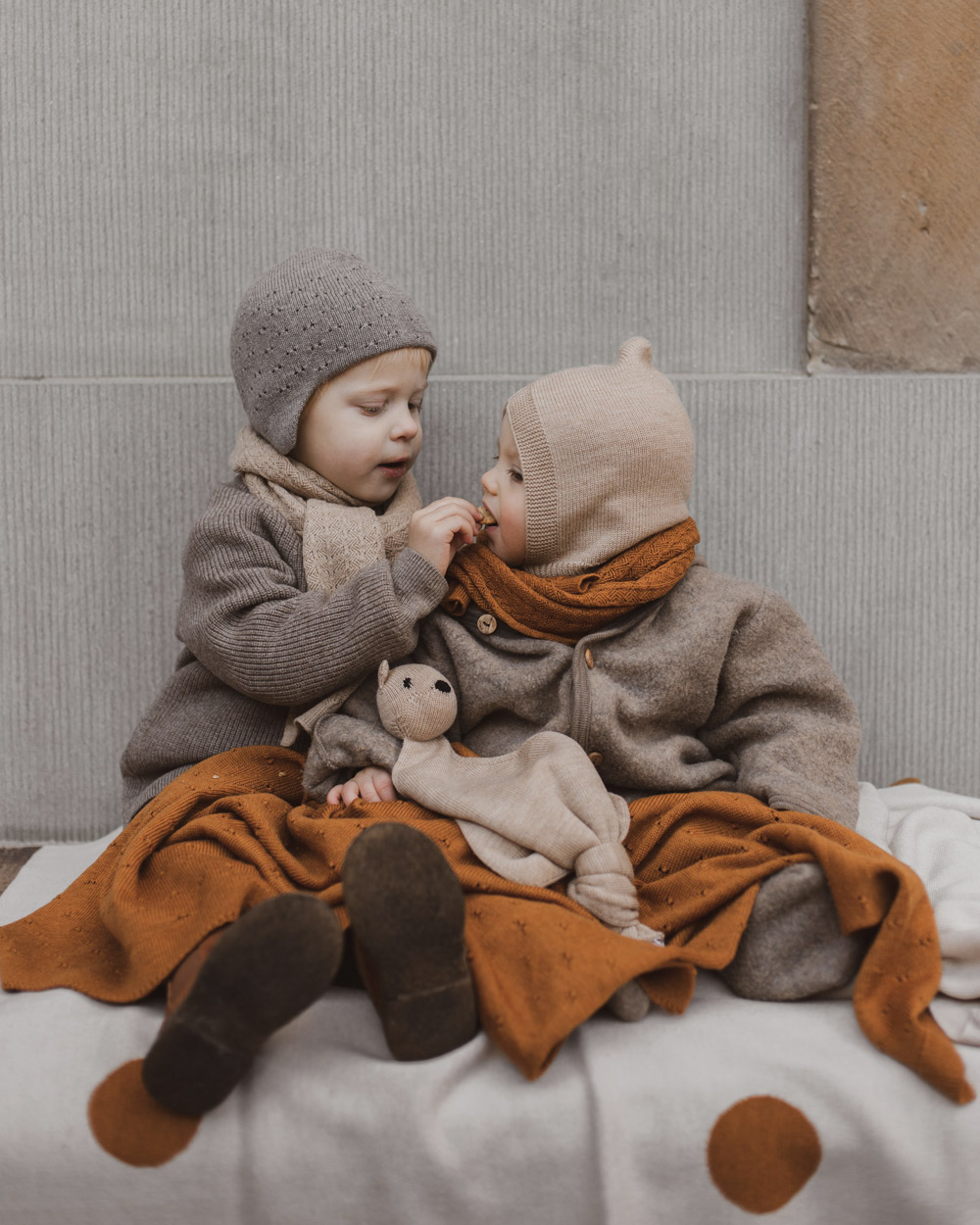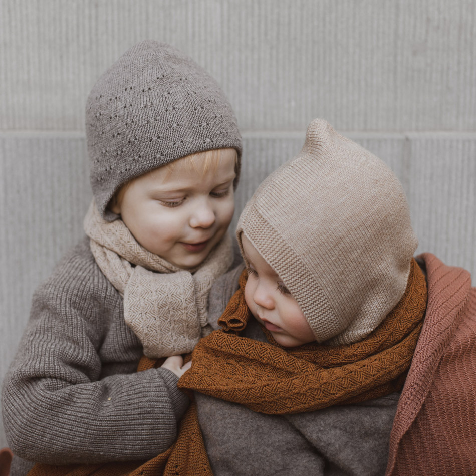 Coup de coeur pour cette cagoule de la maison Hvid. La douceur de sa laine mérinos fait que votre petit amour ne pourra pas se plaindre que ça le démange et fini les bonnets perdus pendant la balade en poussette ou au parc!