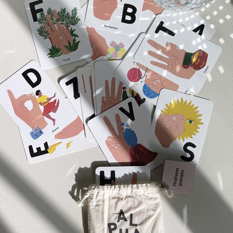 Décoratives et éducatives ces 26 cartes alphabet Maison Patate permettront à vos enfants d’apprendre l’alphabet et l’alphabet dactylologique (langue des signes), de manière joyeuse et ludique.