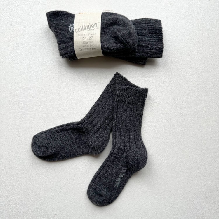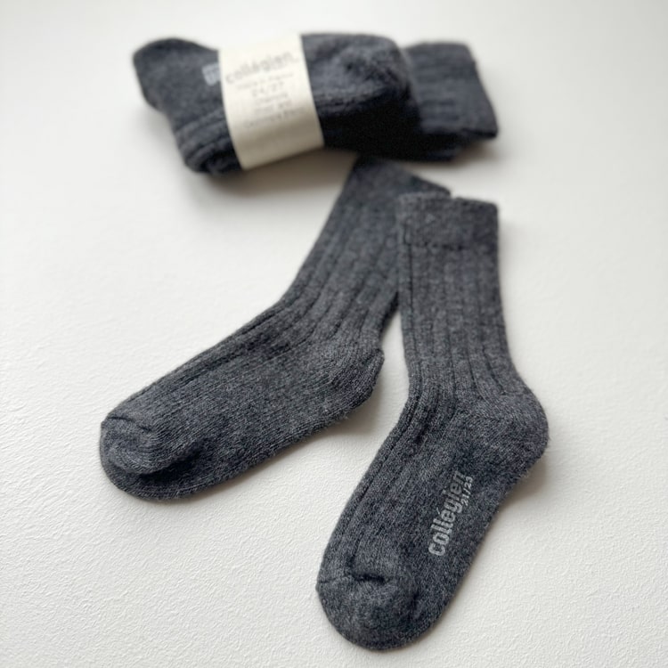 Chaussettes à côtes cachemire et laine mérinos – Smoky