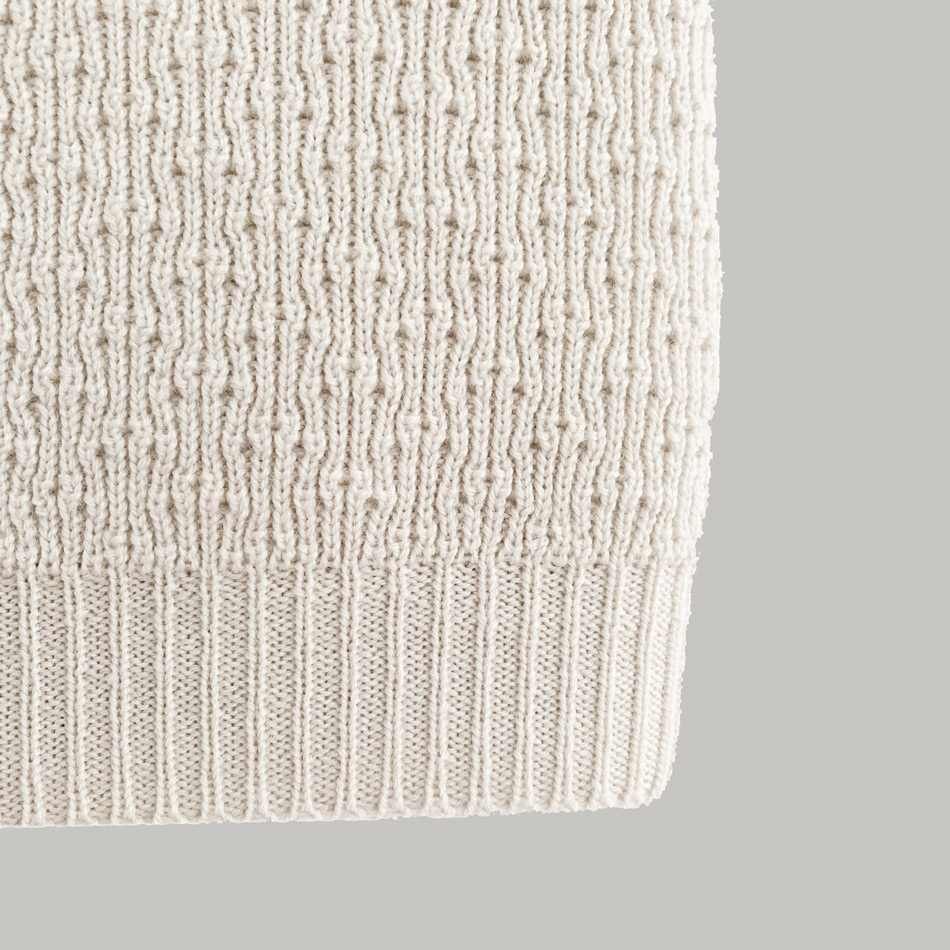 La couverture Dora moëlleuse en laine mérinos de la maison belge Hvid est parfaite pour envelopper votre bébé de douceur et de chaleur. On aime le style original de ses côtes qui lui confèrent une élasticité idéale pour ne pas entraver les mouvements des nouveaux nés tout en les gardant dans un cocon rassurant.