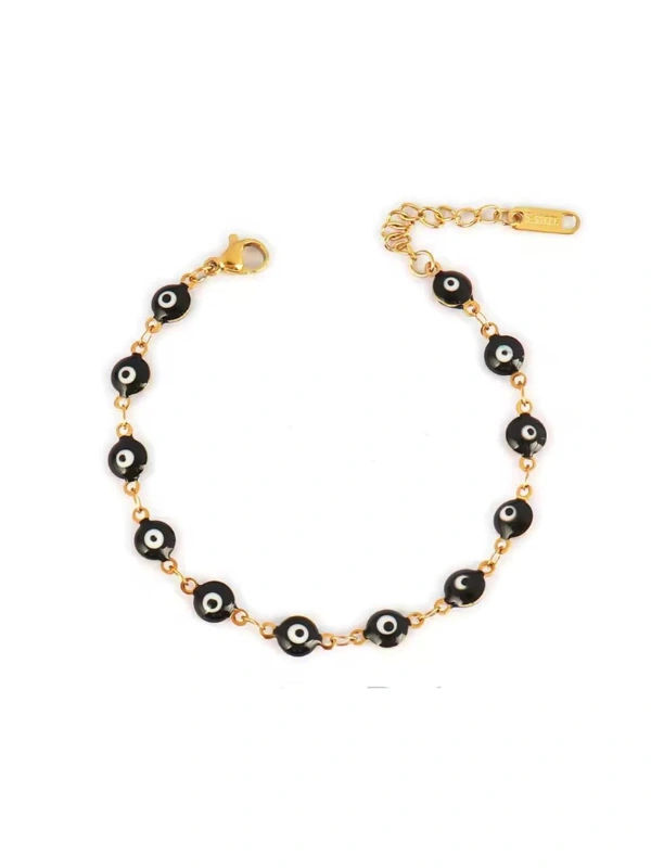 Craquez pour ce bracelet tendance en acier inoxydable doré, composé de perles émaillées au design graphique unique.
