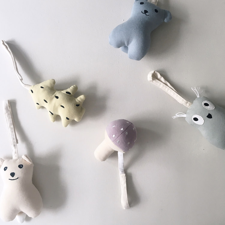 Nous avons craqué pour cet ensemble de très beaux jeux à suspendre en jersey de coton de la marque suédoise Kid’s Concept.