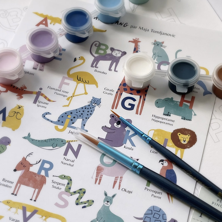 La magie de la peinture au numéro ne cesse de captiver petits et grands. C’est une activité pleine de charme, offrant détente et créativité. Nous sommes enchantés de vous proposer le coffret Petit Pinceau, une véritable ode à l’art et à l’expression personnelle. Imaginé par l’illustratrice de talent Maja Tomljanovic, ce kit met en avant une œuvre inspirée des abécédaires animaliers, idéale pour éveiller l’artiste en chacun de nous. Une fois achevée, cette peinture ajoutera une touche de couleur et de poésie à la chambre de votre enfant. Quelle fierté d’imaginer que chaque coup de pinceau reflètera votre touche personnelle. Découvrez ce trésor d’art et d’expression sur Myla&Milo, et laissez-vous séduire par l’élégance de la peinture au numéro.