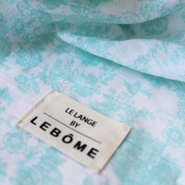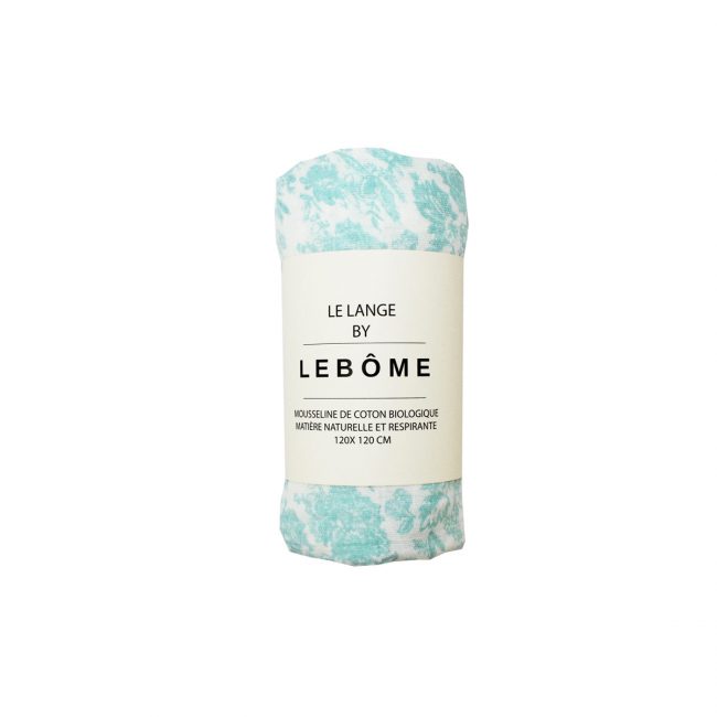 On craque pour l’imprimé turquoise Toile de Jouy du petit lange Harper de la maison Lebôme.