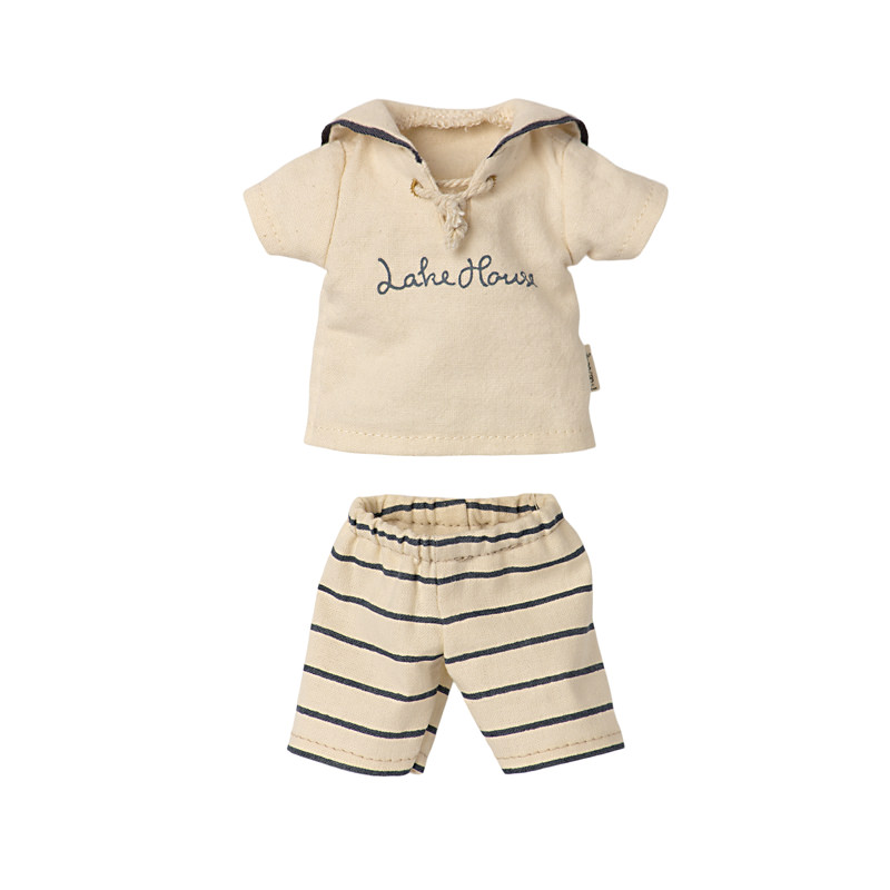 Le lapin en vareuse et short de bain rayé est le parfait compagnon de jeu pour votre enfant. Prêt pour être l’acteur ou même le héros de toutes ses histoires remplies d’imagination, ce lapin signé Maileg est très doux au toucher et est facilement manipulable.