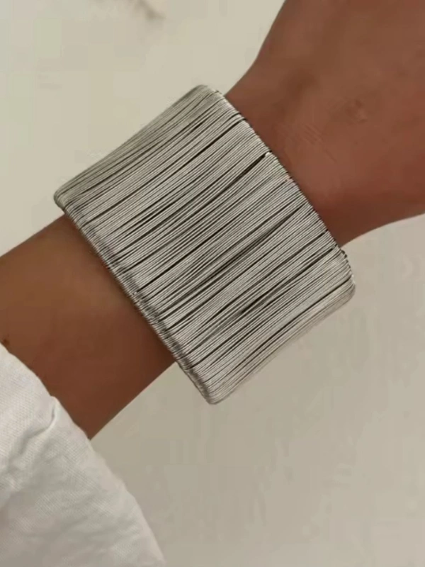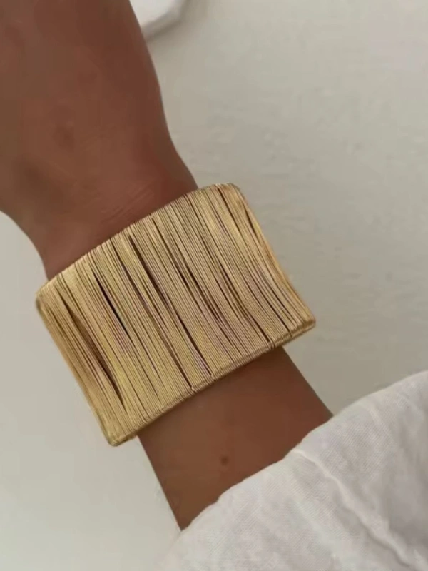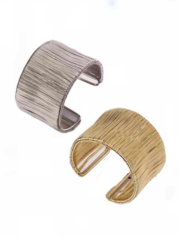 Sublimez votre style avec notre manche au design unique, orné de lignes verticales discrètes qui insufflent modernité et sophistication. Simple et chic, cet accessoire incontournable complète parfaitement vos looks, du quotidien aux occasions spéciales. Conçu en acier inoxydable de haute qualité, il allie élégance et durabilité, tout en s’adaptant aisément. Disponible en deux finitions, doré et argenté, il incarne une élégance minimaliste et raffinée, idéale pour celles et ceux qui aiment les détails qui font la différence.