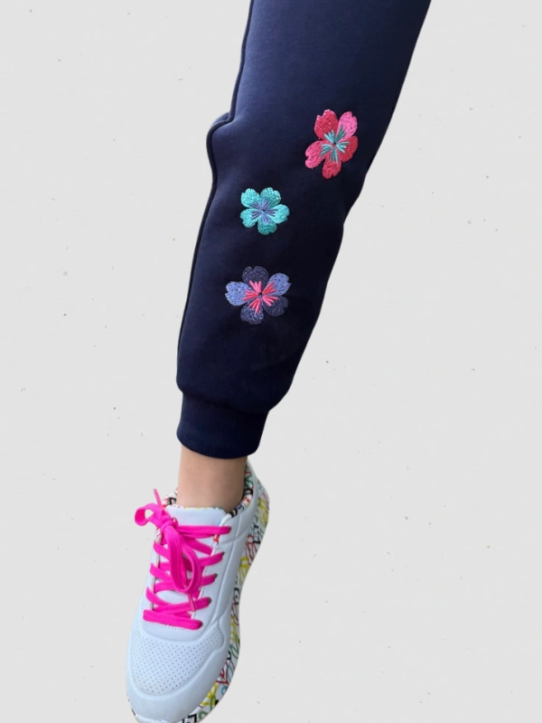 Broderie fleurs de cerisier aux couleurs fluo pour un max d’énergie et de bonne humeur.