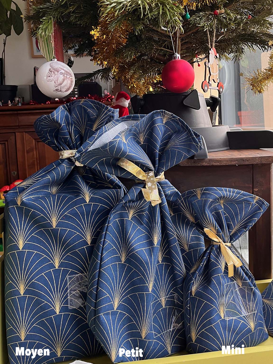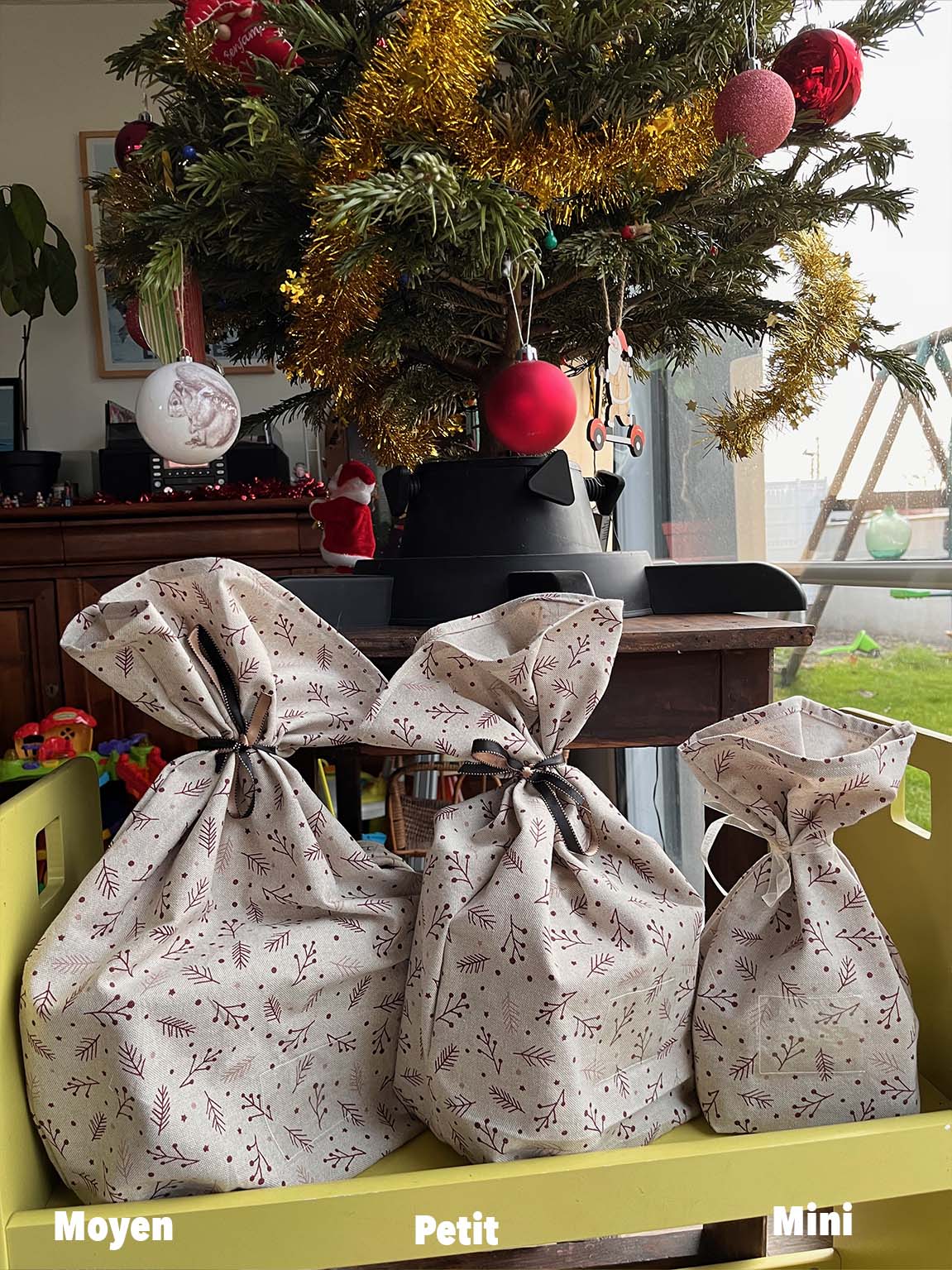 Pochette cadeau en tissu réutilisable avec ruban de fermeture