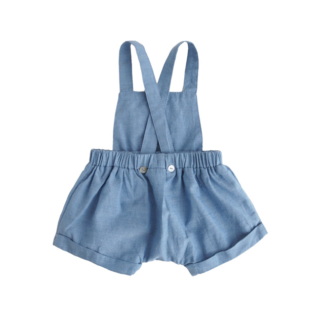 Ravissante petite salopette courte de la maison espagnole Tocoto Vintage en coton bleu unisexe.
