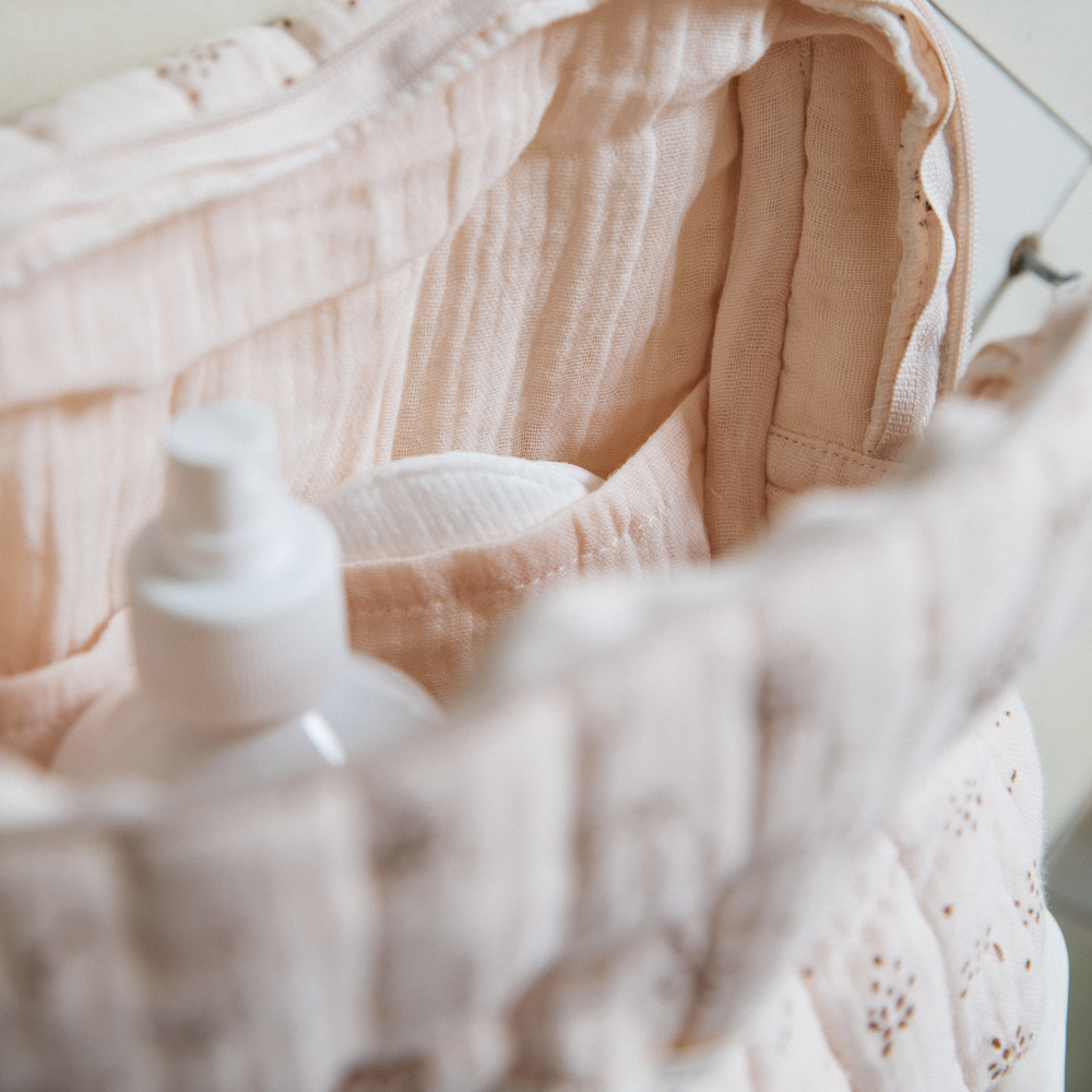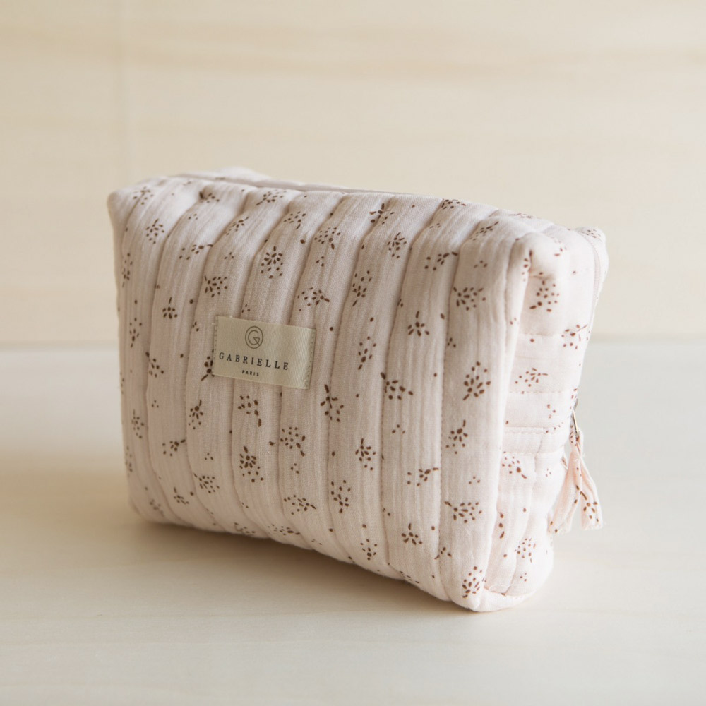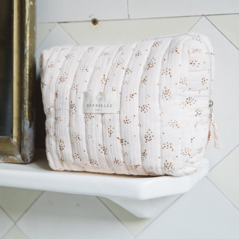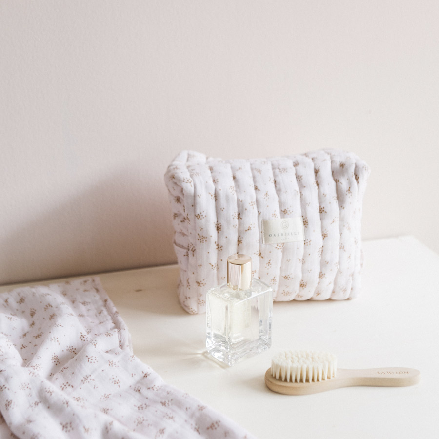 La maison française Gabrielle Paris a imaginé cette trousse de toilette “Etincelles” en gaze de coton bio pour y ranger toutes les affaires de la famille pendant vos voyages ou dans la salle de bain. Elle est également idéale pour y ranger les petites affaires de votre bébé pendant vos sorties.